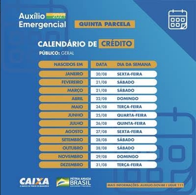 A Caixa Econômica Federal realiza, nesta quarta-feira (25), o pagamento da 5ª parcela do auxílio emergencial aos inscritos no Bolsa Família com NIS (Número de Inscrição Social) final 6 e a inscritos via aplicativo que nasceram no mês de junho. Os valores variam entre R$ 150, R$ 250 ou R$ 375, dependendo da composição familiar.