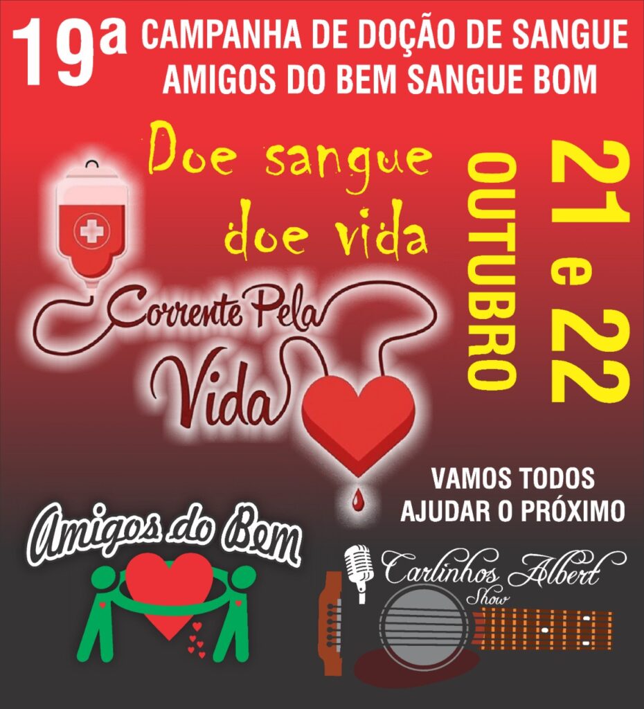 Mais uma vez, o apresentador e radialista Carlinhos Albert Show, do Tarde Sertaneja da Caçula FM, através de seu grupo, organiza a 19° Campanha de Doação de Sangue “Amigos do Bem Sangue Bom” nos dias 21 e 22 de outubro. A ação tem o apoio da Caçula FM e da UniCesumar.