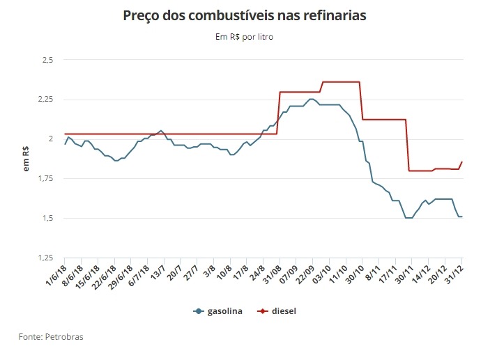 “Com o ajuste anunciado na segunda-feira, há uma queda de 2,1% em 12 meses no preço médio do diesel comercializado pela Petrobras”, destacou a empresa.