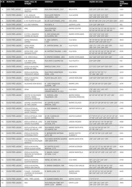 Confira os locais de votação em Três Lagoas: