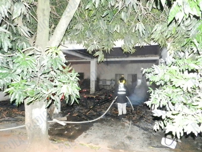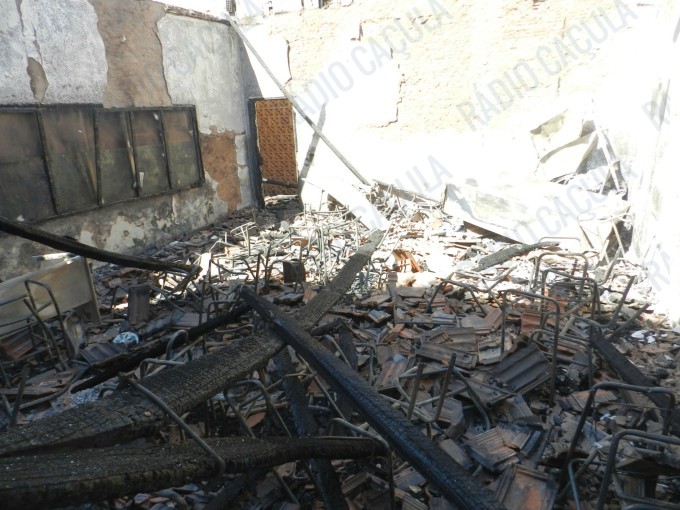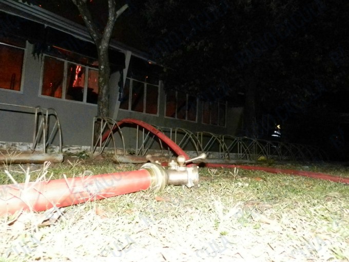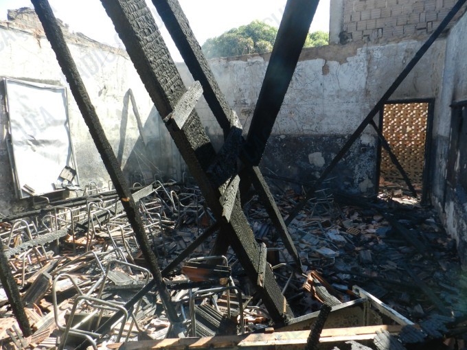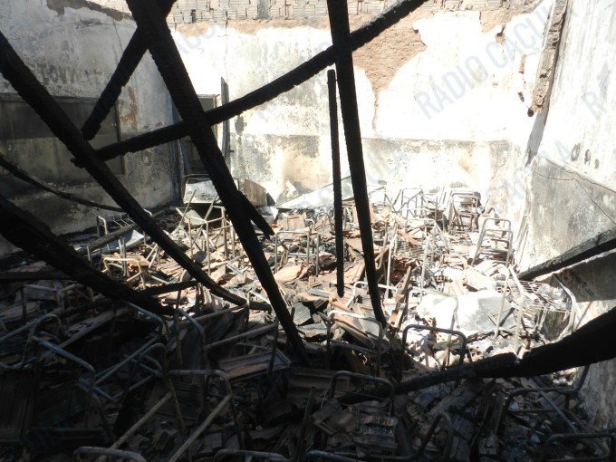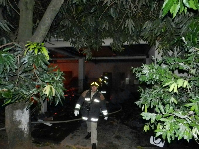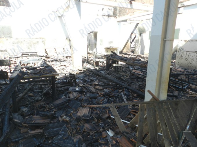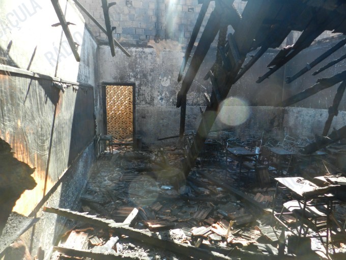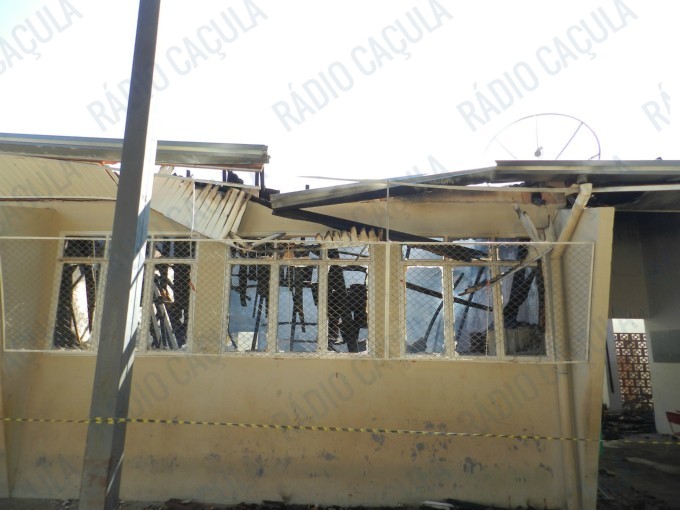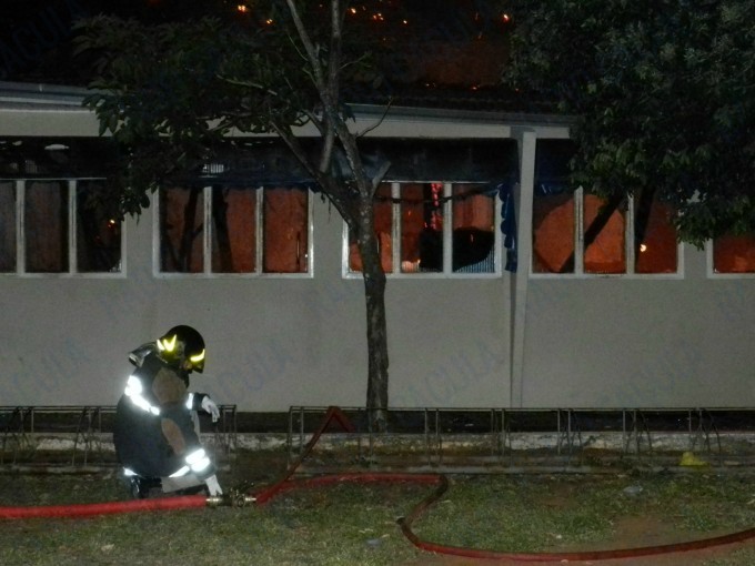 A reportagem acompanhou o trabalho do Corpo de Bombeiros que não puderam evitar que as chamas consumissem toda a escola, exceto duas salas – uma delas de computação – construídas ao lado do pavilhão onde principal, onde estão as salas de aula.