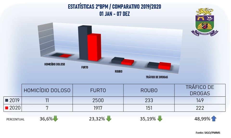 TRÊS LAGOAS: A Polícia Militar de Três Lagoas divulgou nesta sexta-feira (11) um balanço das principais ocorrências policiais registradas neste ano no município, no período de 01 de janeiro a 07 de dezembro.