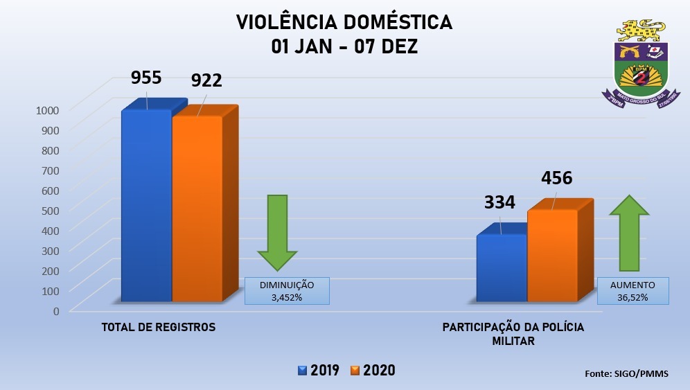 Violência contra as mulheres caiu 3,45%, comparado ao mesmo período de 2019, que registrou 955 casos contra 922 neste ano.