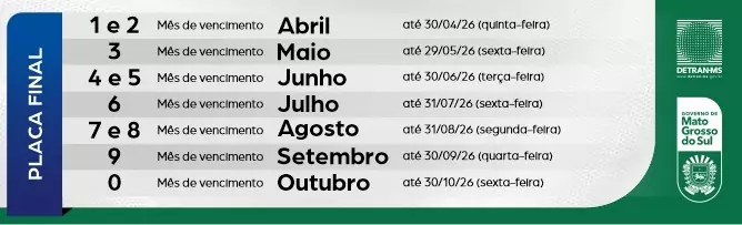 O pagamento do licenciamento de veículos 2026 já começou em Mato Grosso do Sul, conforme calendário divulgado pelo Detran-MS. Neste mês de abril, devem regularizar a situação os proprietários de veículos com placas de final 1 e 2.