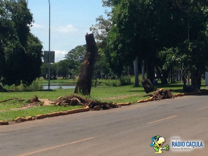 Segundo o rapaz o entulho está há três dias próximo ao meio fio no entorno da Lagoa Maior, além disso, os quiosques estão completamente sujos com mato alto e galhos de árvores.