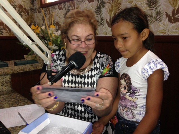 A ganhadora do prêmio esteve na Rádio Caçula para receber o tão esperado Tablet, conheceu a apresentadora Toninha Campos e revelou uma enorme felicidade.