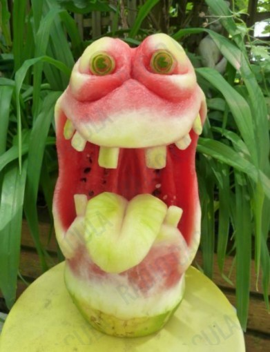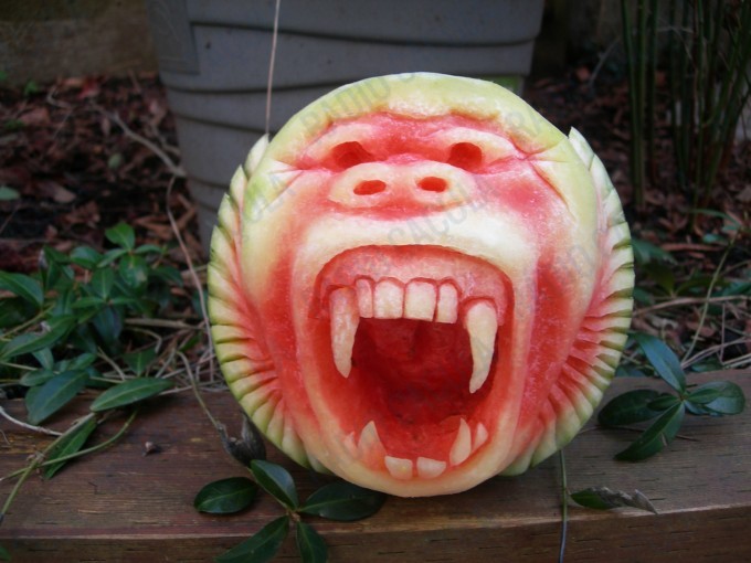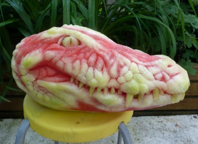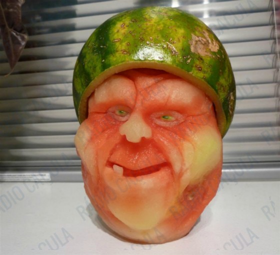 Clive Cooper é um artista improvável tanto quanto é improvável uma de suas matérias-primas favoritas para trabalhar. Sem treinamento formal, Cooper deu vazão à sua criatividade buscando sempre métodos e materiais novos. Parte dos resultados são as esculturas em abóboras e melancias que você vê abaixo (embora exista ali também uma banana e um morango perdidos).