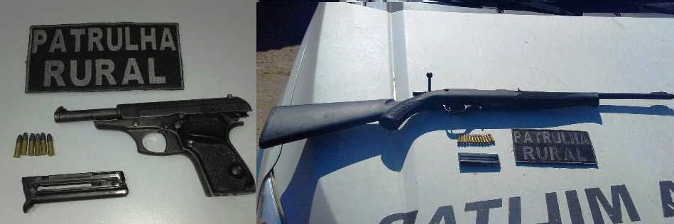 Uma equipe da Patrulha Rural do 2º Batalhão de Polícia Militar de Três Lagoas retirou de circulação nesta quarta-feira (21), duas armas de fogo e munições. As apreensões ocorreram próximo a uma delegacia de Polícia Civil e durante um bloqueio policial realizada em uma estrada vicinal na região da cidade de Água Clara-MS, distante 145 de Três Lagoas.
