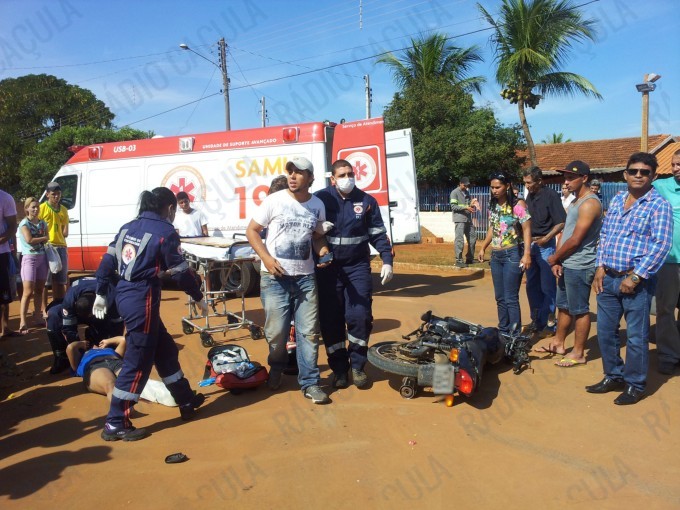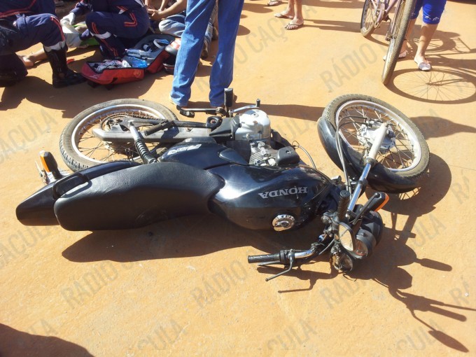 Os Policiais Militares foram acionados via Copom (Centro de Operações da Polícia Militar) neste domingo (13), por volta das 10h45min da manhã, para atender a uma ocorrência de acidente de trânsito, na Rua Manoel de Faria Duque, bairro Jardim das Violetas, a ocorrência envolveu um carro e uma motocicleta.
