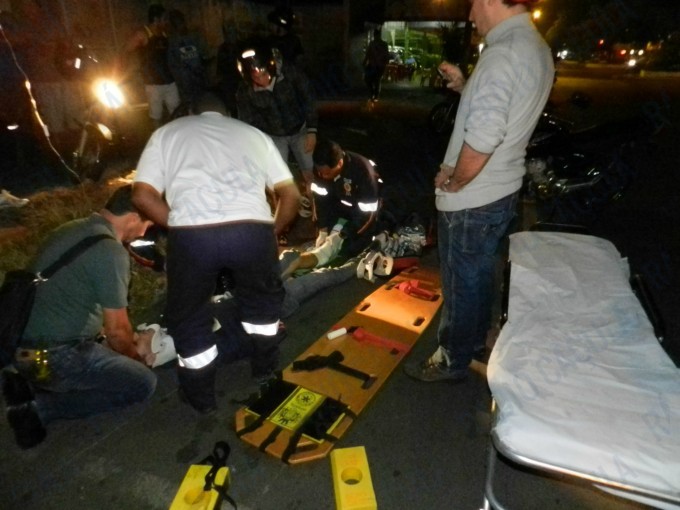 Conforme dados policiais, o motorista de uma Fiat Strada transitava pela Avenida Capitão Olinto Mancini no sentido bairro/centro e ao estacionar no canteiro central da avenida foi atingido pelo motociclista que seguia no mesmo sentido.