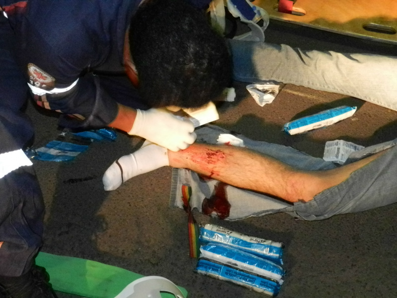 Com o impacto, o piloto da moto Honda Titan 150 sofreu uma queda e teve que receber atendimento médico de uma equipe do Serviço de Atendimento Móvel de Urgência (SAMU), que constatou uma fratura exposta na tíbia (canela) da vítima e diversos ferimentos pelo corpo.