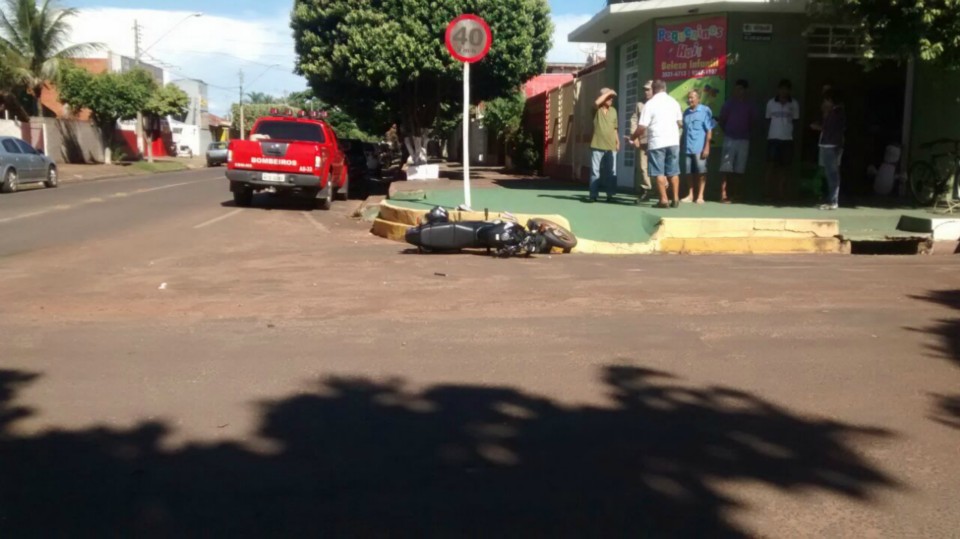 Na tarde desta quinta-feira (12) um acidente foi registrado na área central deTrês Lagoas (MS) envolvendo uma moto Honda CG 150, de cor preta que seguia pela rua Egídio Thomé, quando acabou sendo atingida por um Fiat Sienna, de cor branca que vinha pela rua Elviro Mario Mancini.