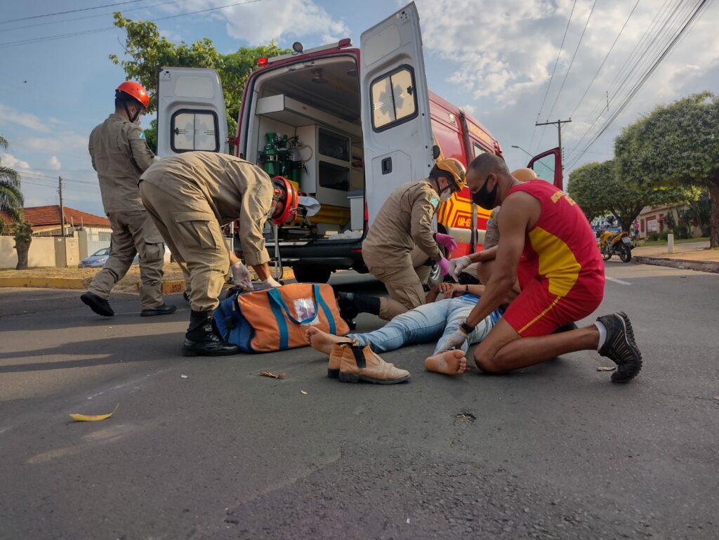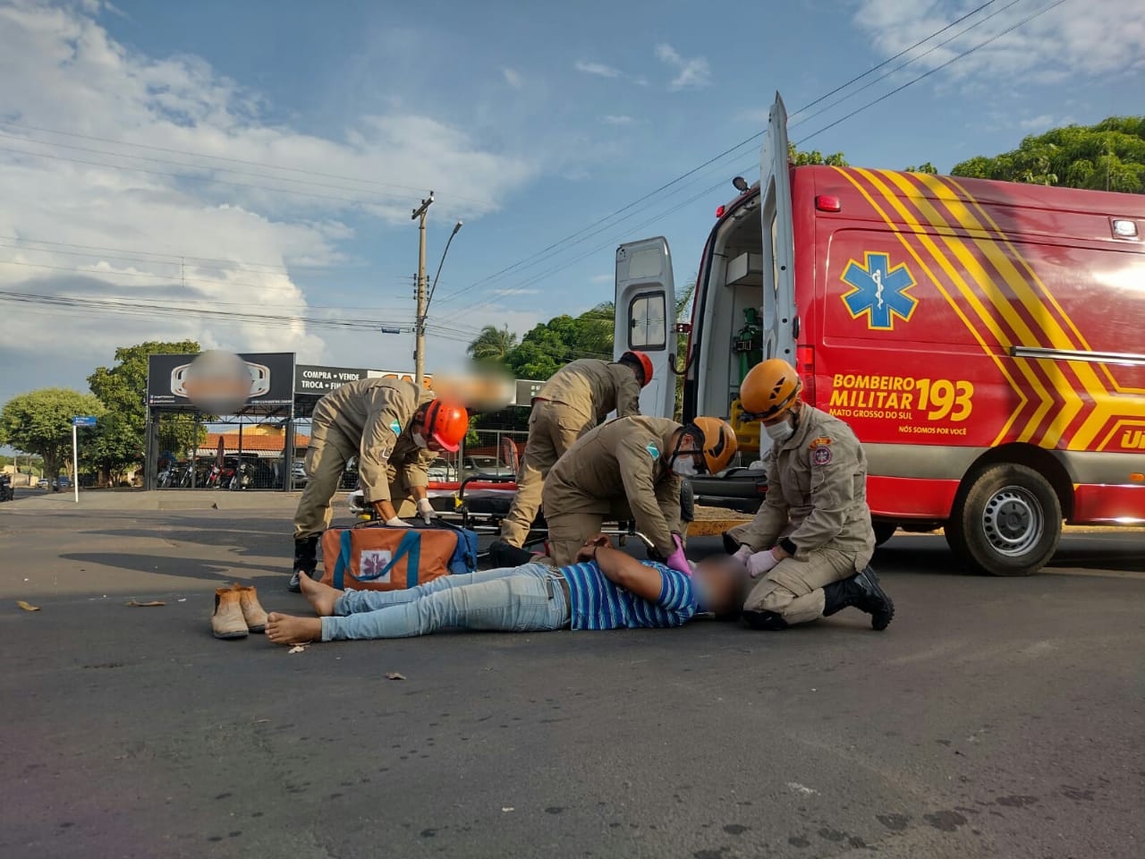 TRÊS LAGOAS (MS) – Na manhã de hoje (9), um acidente com vítima foi registrado no cruzamento da Av. Filinto Muller com a rua Domingos Rimoli, no bairro Santo André.