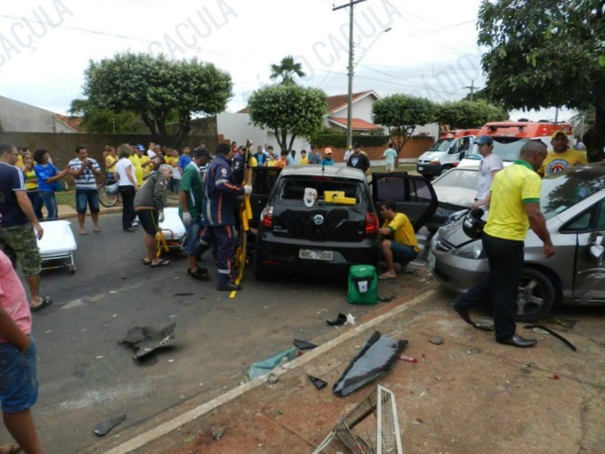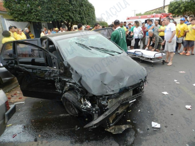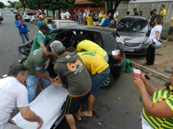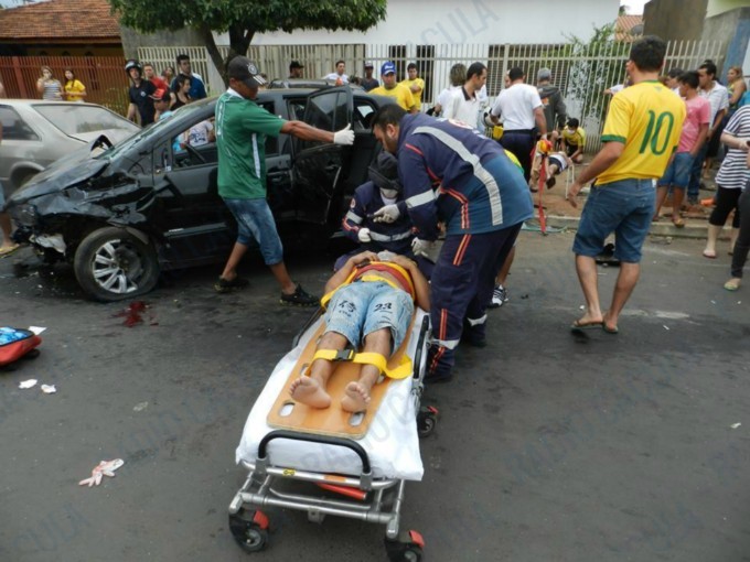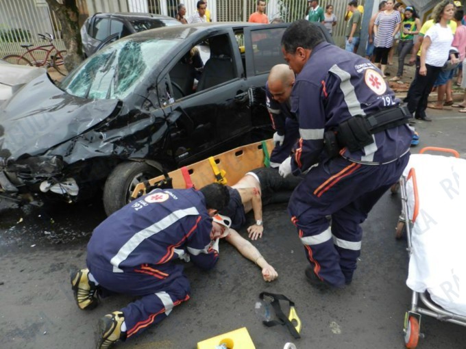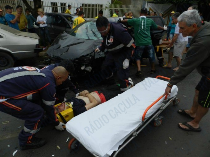 O motorista de um automóvel VW Fox ficou gravemente ferido em um acidente de trânsito na região do bairro Santos Dumont, região nobre de Três Lagoas. O incidente aconteceu na tarde deste sábado (28) após o jogo entre Brasil e Chile, momento em que várias pessoas estavam nas ruas festejando a vitória do time brasileiro.