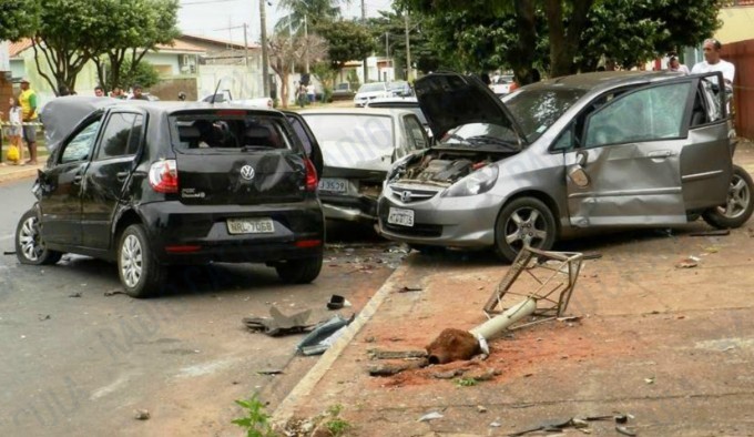 Dados da Polícia Militar apontam que a pessoa de alcunha “Ney” guiava seu veículo Fox de cor preta de placas NRL 7068 pela Rua Maria Guilhermina Esteves no sentido bairro Santa Rita/Ginásio Municipal e por motivos a serem esclarecidos, perdeu o controle da direção e bateu em quatro carros que estavam estacionados corretamente na via pública.