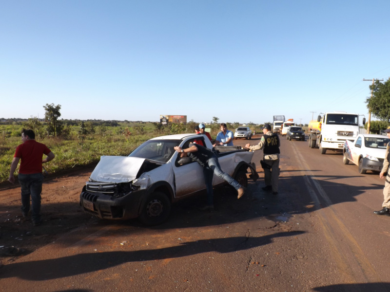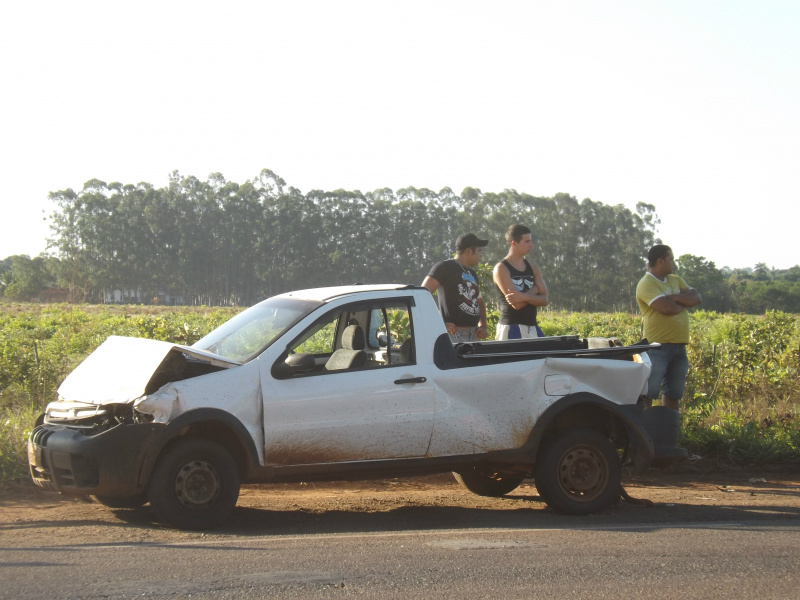 Um acidente na BR-262, no anel viário em Três Lagoas resultou em danos materiais em um automóvel Fiat Strada de cor branca.