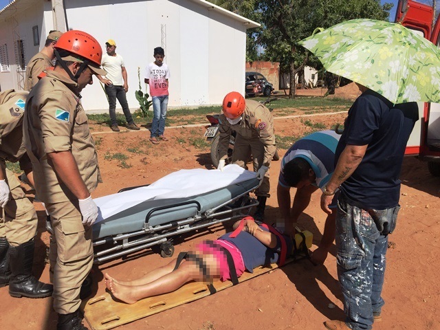 Para auxiliar o trabalho do socorrista do Samu, que prestava o atendimento, duas equipes do Corpo de Bombeiros estiveram no local e socorreram a mulher até o Hospital Auxiliadora escoriações e dores pelo corpo. Seu esposo não teve ferimentos