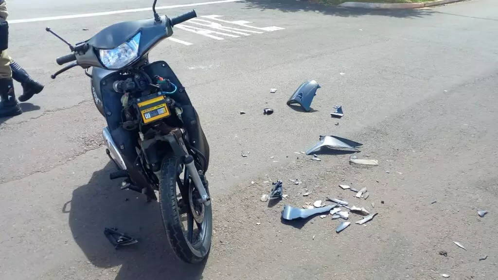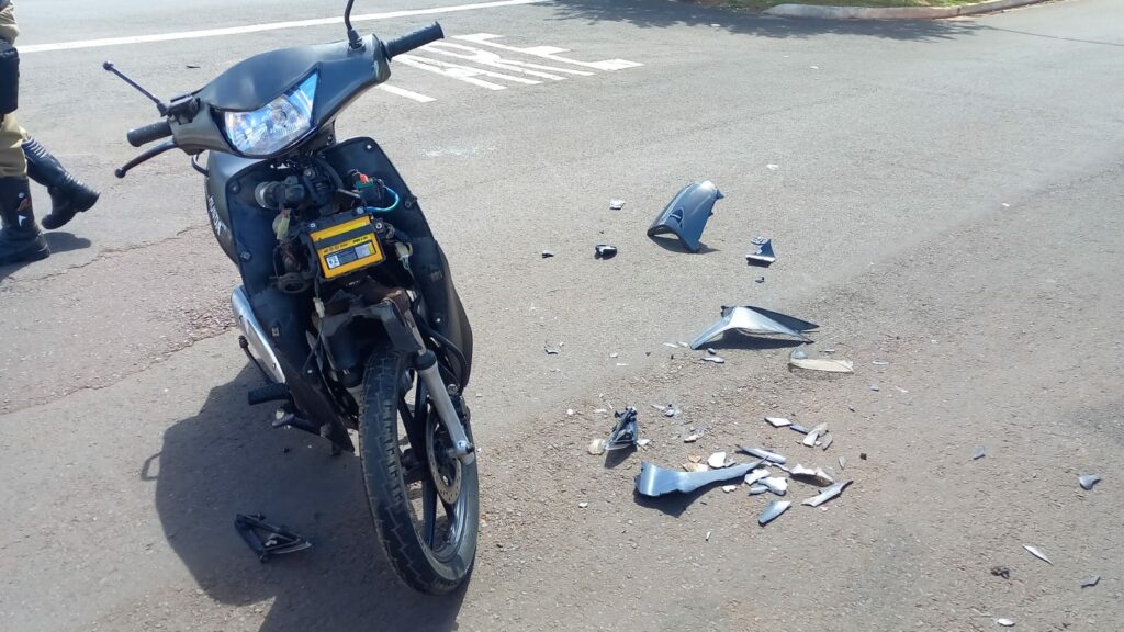 A colisão ocorreu no cruzamento da rua Generoso Siqueira com a Avenida Baldomero Leituga. Com o impacto, o motociclista sofreu uma queda e precisou de atendimento médico, apresentando suspeita de fratura no joelho.