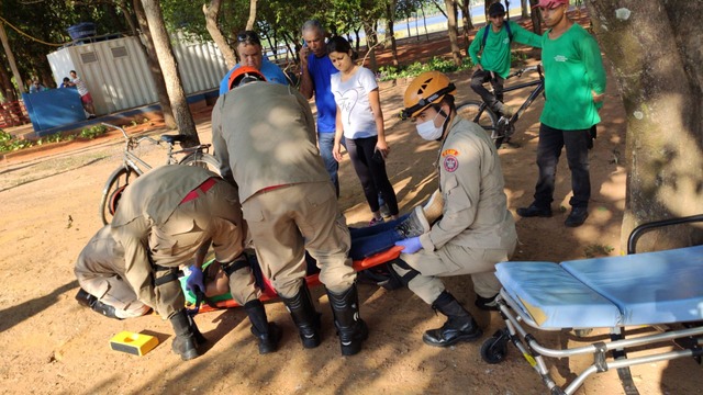 Acidente entre ciclista e motociclista deixa duas pessoas feridas na Circular da Lagoa Maior