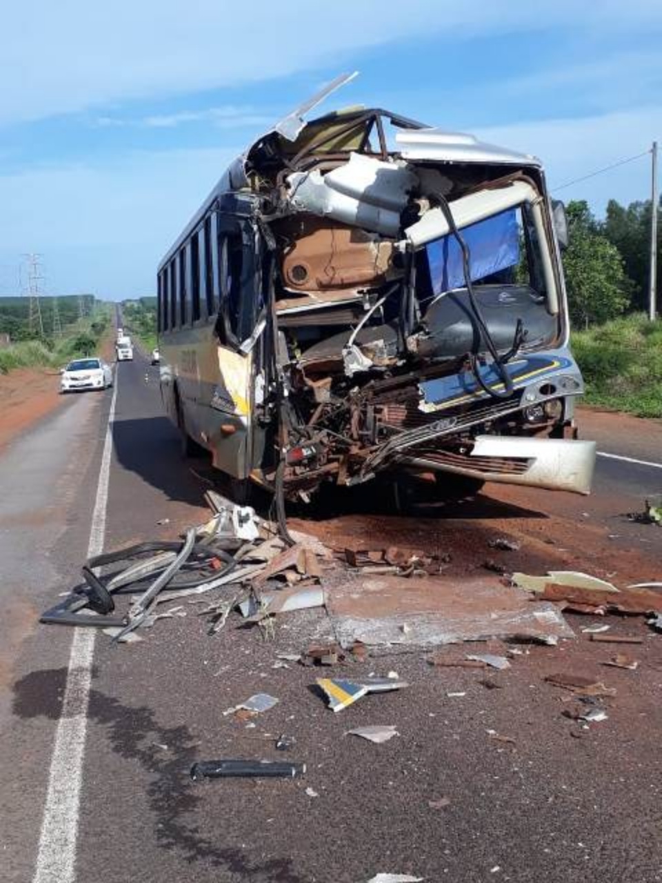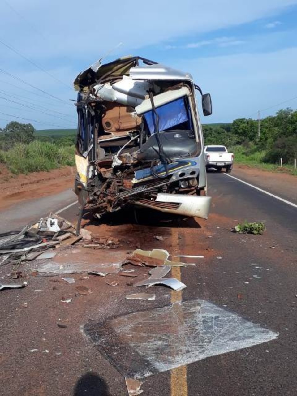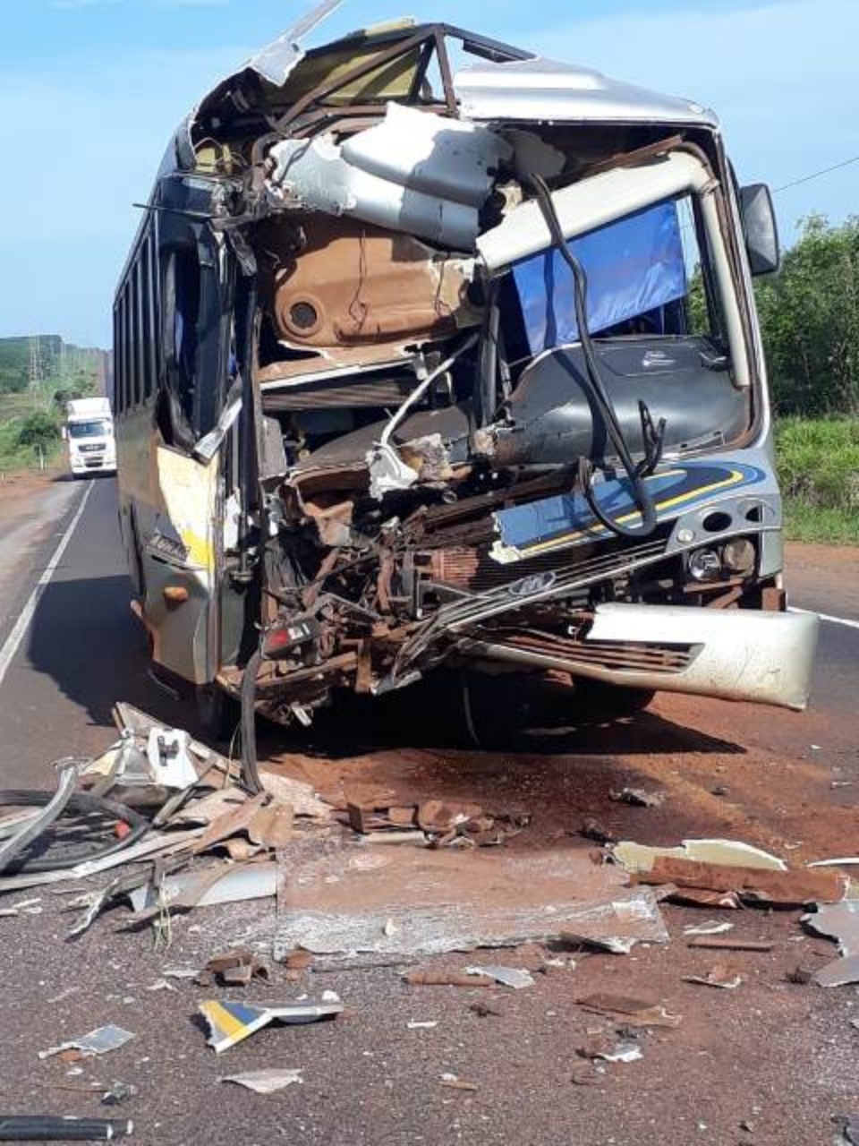 Apesar do susto, e da frente do ônibus ficar totalmente destruída, não houve ferimentos graves, graças ao uso do cinto de segurança, na qual a motorista antes de suas viagens sempre verifica se todos estão usando.