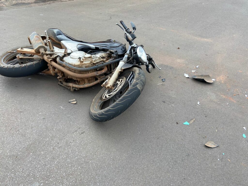 Um carro Toyota Etios da cor prata que trafegava na Rua Dr. Oscár Guimarães em Três Lagoas (MS), colidiu com um homem que pilotava uma moto na Rua Dr. Orestes Prata Tibery , na tarde desta quinta-feira (03).