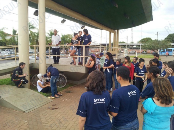 A Associação de Auxiliares e técnicos em Enfermagem de Três Lagoas e Região do Bolsão (AATERB) promoveu nesta tarde, na Praça Ramez Tebet um simulado de primeiros socorros, para os alunos do Senac, juntamente com a Empresa Alfa’s Treinamentos.