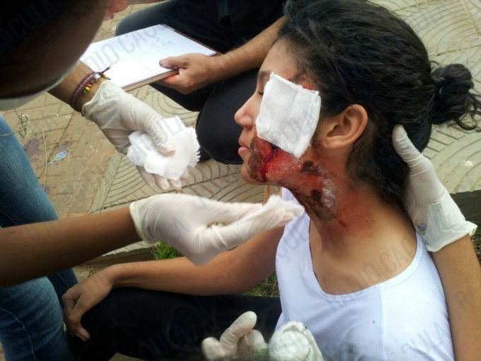 Os alunos participantes aparecem com vários ferimentos e sangue escorrendo pelo rosto, e pelo corpo todo também.