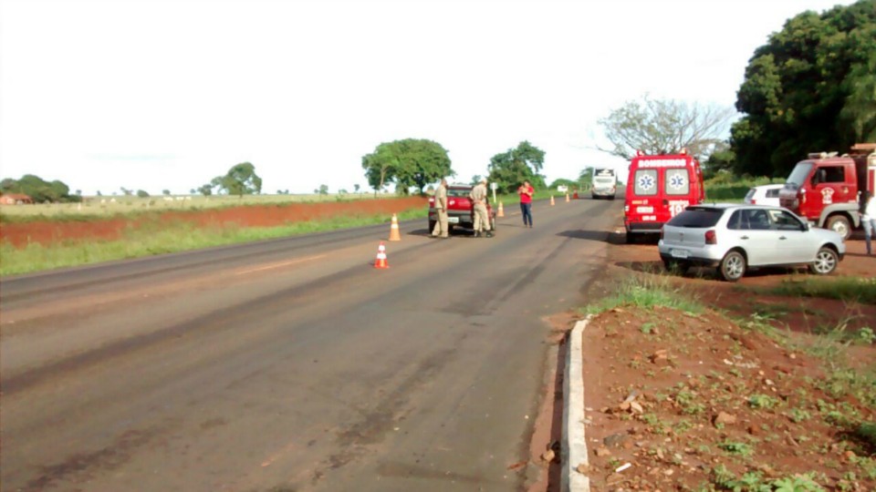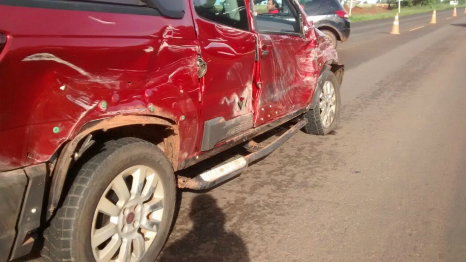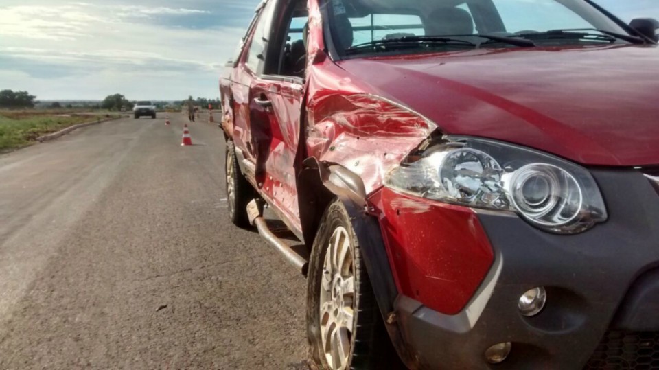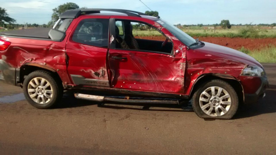 Na manhã de hoje, quinta-feira (05) um acidente na BR 158 próximo de Três Lagoas (MS) deixou uma Fiat Strada de cor vermelha com a lateral completamente destruída.