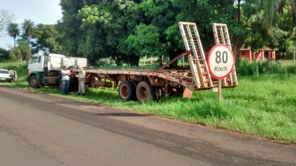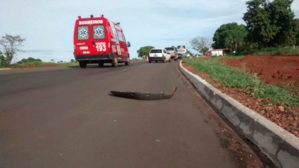 Os passageiros da Fiat Strada e da carreta nada sofreram. O bombeiro compareceu no local para prestar apoio.
