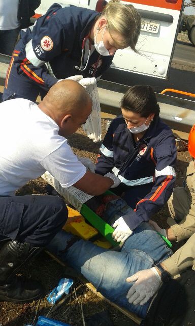 Uma unidade básica e uma de suporte avançado do SAMU prestaram os primeiros atendimentos ao homem, enquanto os bombeiros prestavam apoio nos apoiavam o socorro e auxiliavam no controle do trafego de veículos do local, mantendo a segurança das vítimas e socorristas.