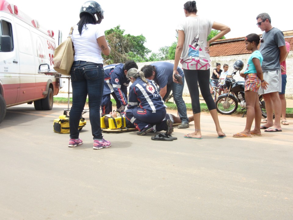 O acidente aconteceu próximo a uma escola estadual e o SAMU foi acionando por moradores para prestar os devidos cuidados médicos, o motociclista estava sentindo muita dor na clavícula e a causa pode ser uma possível fratura.