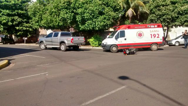 Uma unidade de resgate do SAMU (Serviço de Atendimento Móvel de Urgência) foi acionada a comparecer na região central de Três Lagoas, onde um acidente entre uma caminhonete e uma moto, deixou um jovem ferido.