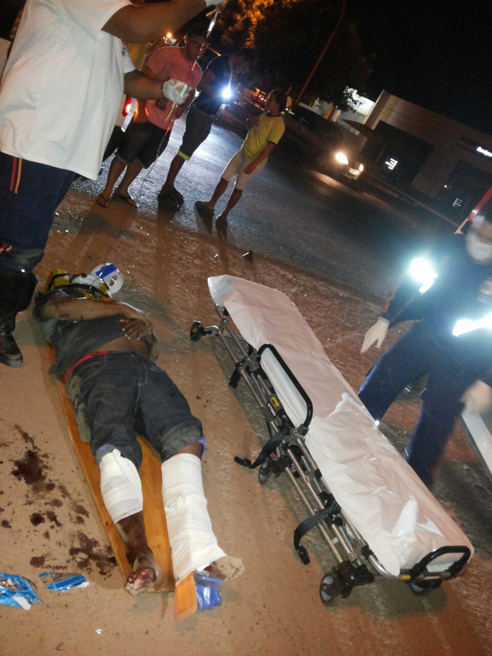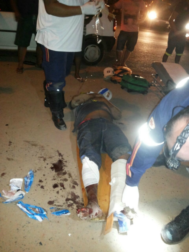 Por conta da queda, o motociclista sofreu várias escoriações pelo corpo e, provavelmente, fraturou uma das pernas. Depois de imobilizado pelos socorristas do Samu, ele foi levado para uma unidade de saúde. Os dois veículos ficaram bastante danificados.