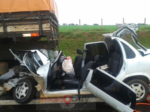 No carro estava um casal da cidade de Nova Andradina, que morreu no local, e duas adolescentes que estavam no banco traseiro, uma com 17 e outra com 22 anos de idade. As jovens foram levadas em estado grave para o Hospital Regional da cidade de Assis.