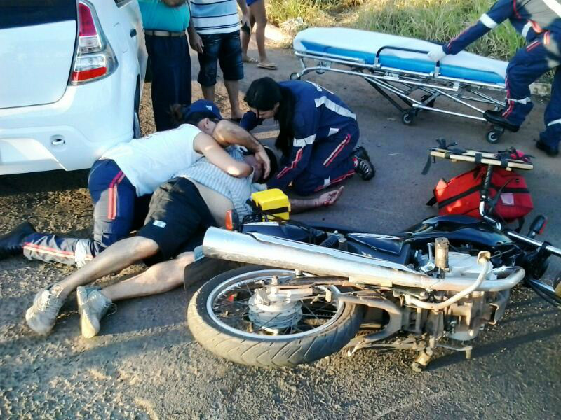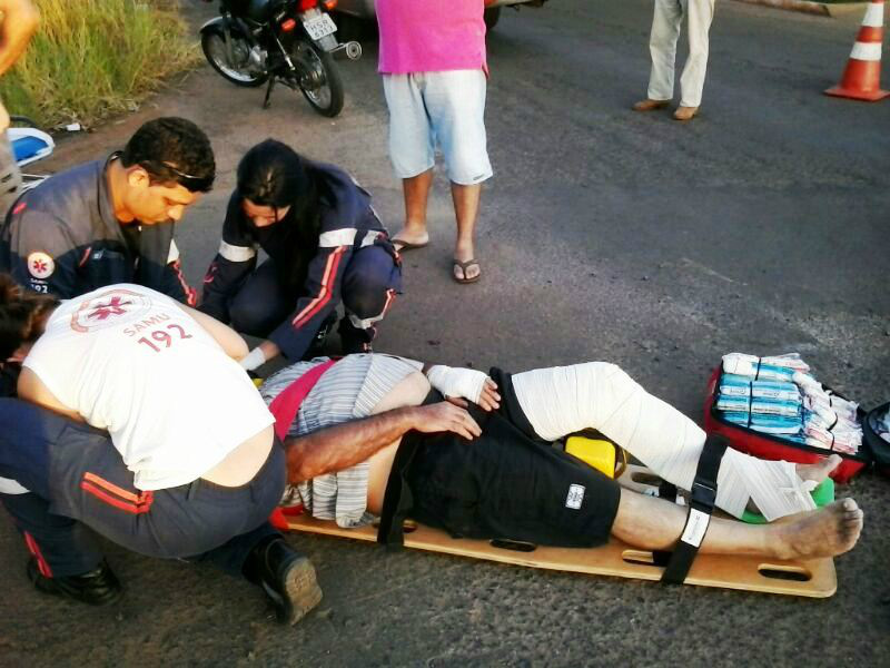 Um acidente de trânsito ocorrido no bairro Santos Dumont em Três Lagoas mobilizou por volta das 16h35min da tarde deste sábado (10) uma equipe do Serviço de Atendimento Móvel de Urgência (SAMU), que resgatou um motociclista de 67 anos.