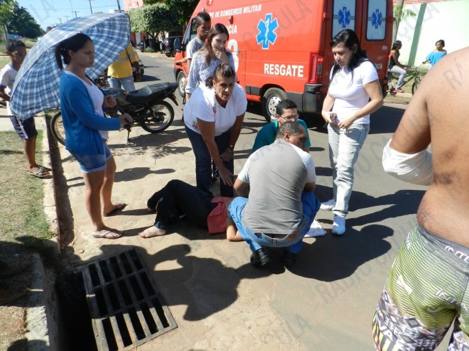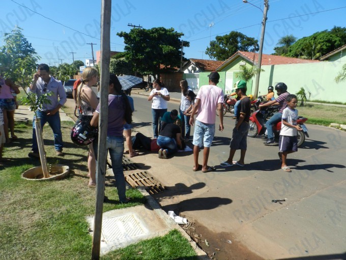 Uma motociclista estava com uma fratura grave ao bater sua moto Honda Titan 125 de cor vermelha de placa HST 4609 em um automóvel Renault Clio de cor prata de placas HST 6505. O incidente aconteceu às 12h55min desta segunda-feira (28) na Rua 13 de Junho, próximo a Escola Municipal Flausina de Assunção Marinho, no bairro Santa Rita.