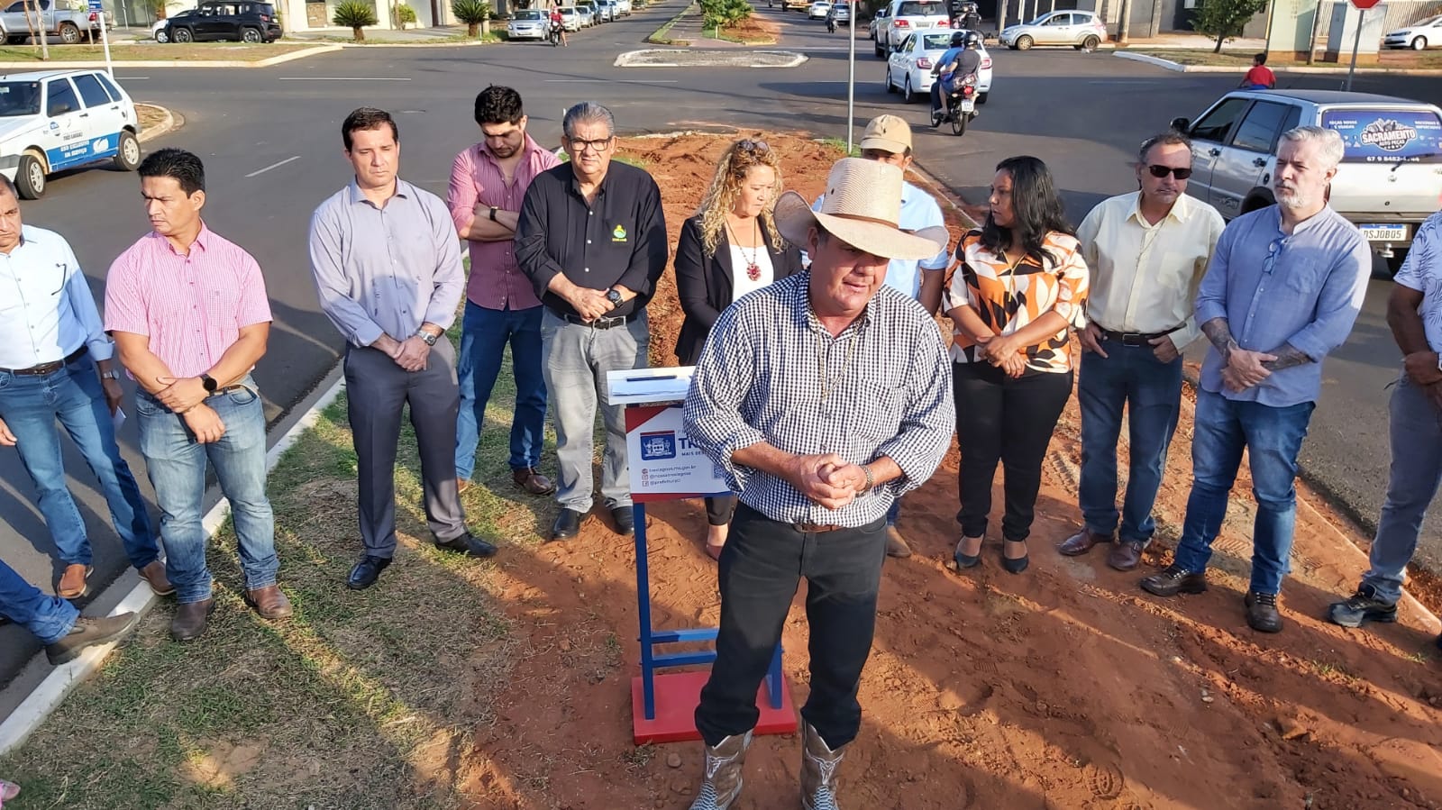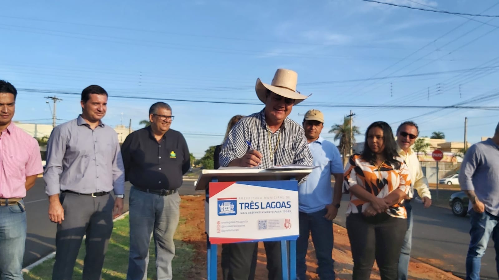 TRÊS LAGOAS – Na manhã desta terça-feira (05), acompanhado de autoridades municipais, o Prefeito Ângelo Guerreiro assinou a OS – Ordem de Serviço, para a implantação no canteiro central da iluminação pública, trocando as lâmpadas comuns – de vapor de sódio, pelas de LED, mais modernas e mais econômicas no trecho entre a Av. Baldomero Leituga, que recebeu recentemente a pavimentação asfáltica e obras de drenagem pluvial, até a rua XV de Novembro e a Av. Fillinto Muller.
