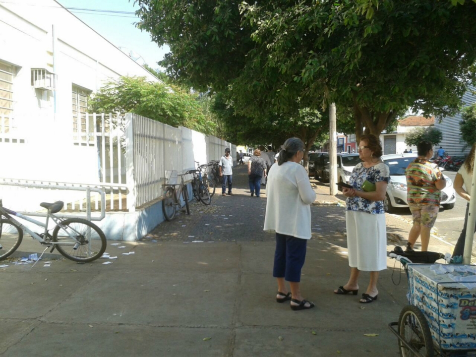 Pelas imagens captadas pela nossa equipe, é possível perceber santinhos jogados na calçada, o que contraria a Lei Eleitoral.
