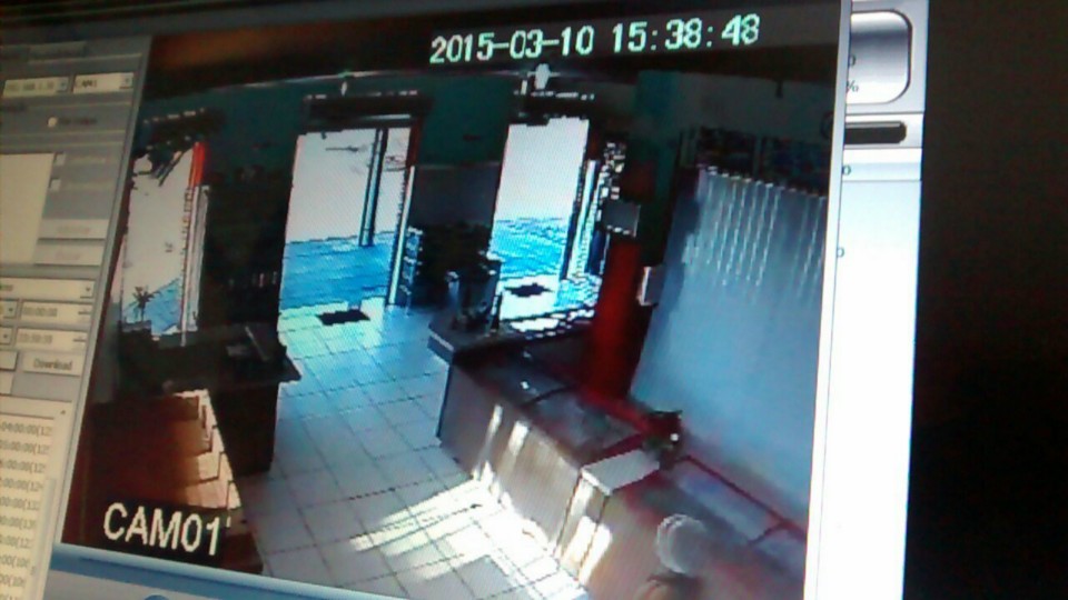 As câmeras de segurança do açougue gravaram o momento da ação. Confira nos vídeos abaixo:
