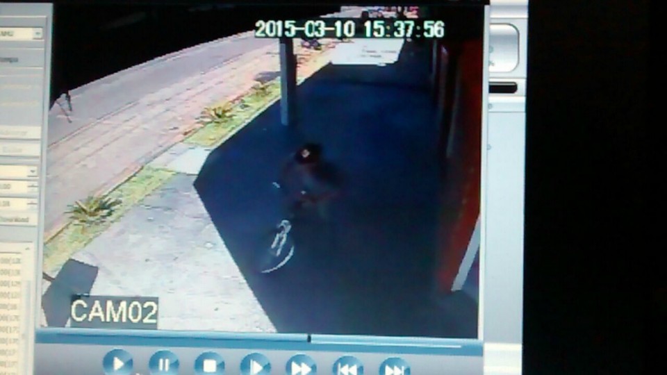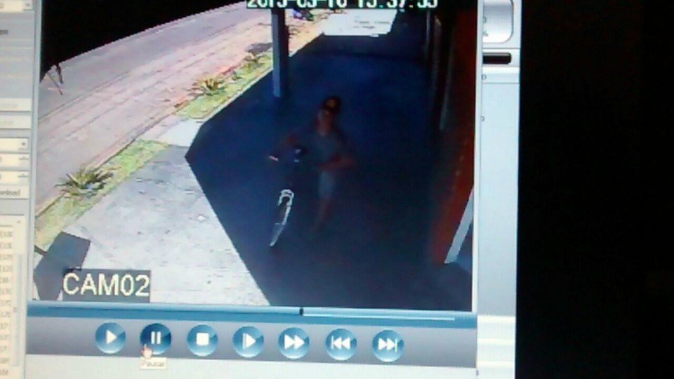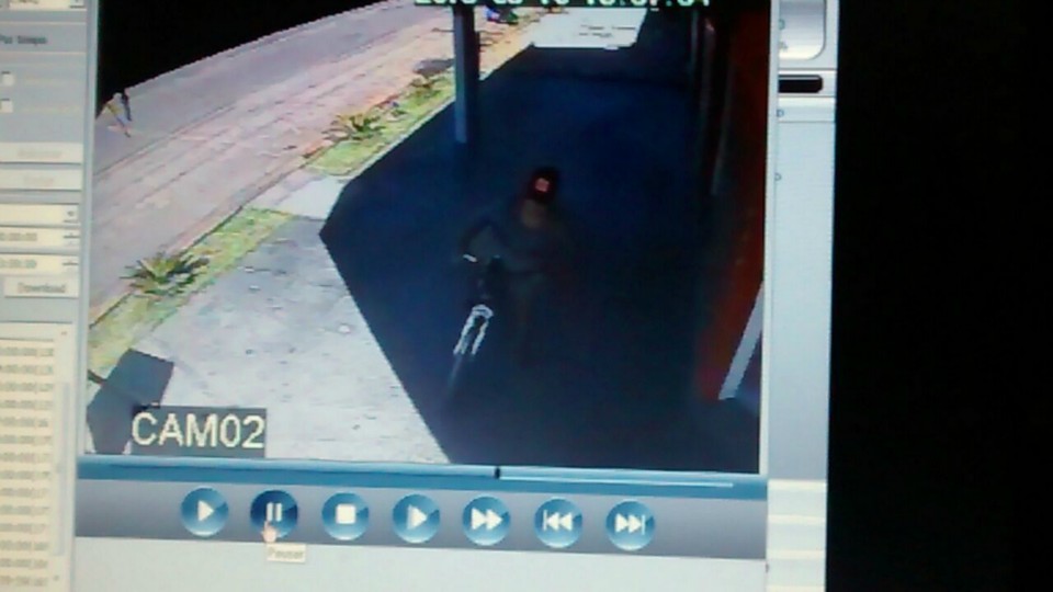 As câmeras de segurança do açougue mostram o exato momento da ação, o homem estava de bicicleta e agiu com calma.