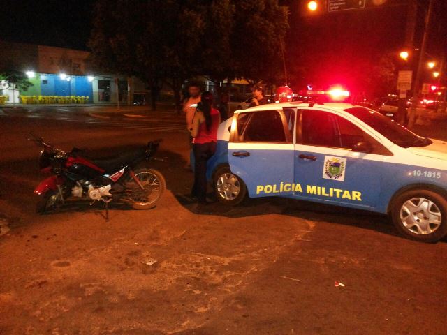 No local, populares informaram que a condutora O.A.P. (64 anos) transitava em um veículo Kia Sorento, cor branca, placas de Três Lagoas, pela Rua Oscar Guimarães, sentido bairro ao centro, quando no cruzamento com a Avenida Capitão Olinto Mancine, veio a colidir a parte lateral do veículo com a motocicleta Shineray, cor vermelha, sem placas, conduzida pelo menor J.M.B. (16 anos).