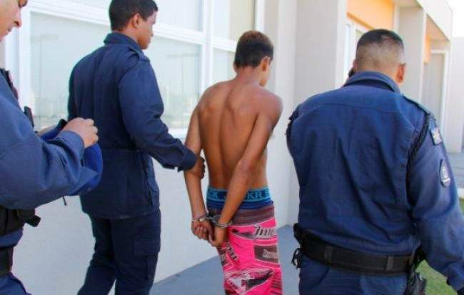 Os adolescentes afirmaram que o autor conhecido por ‘Bugão’ não estava no local, mas com as características passadas pela vítima aos guardas ele foi localizado andando pelas ruas. Ao avistar os guardas, o autor fugiu pulando os quintais das residências.