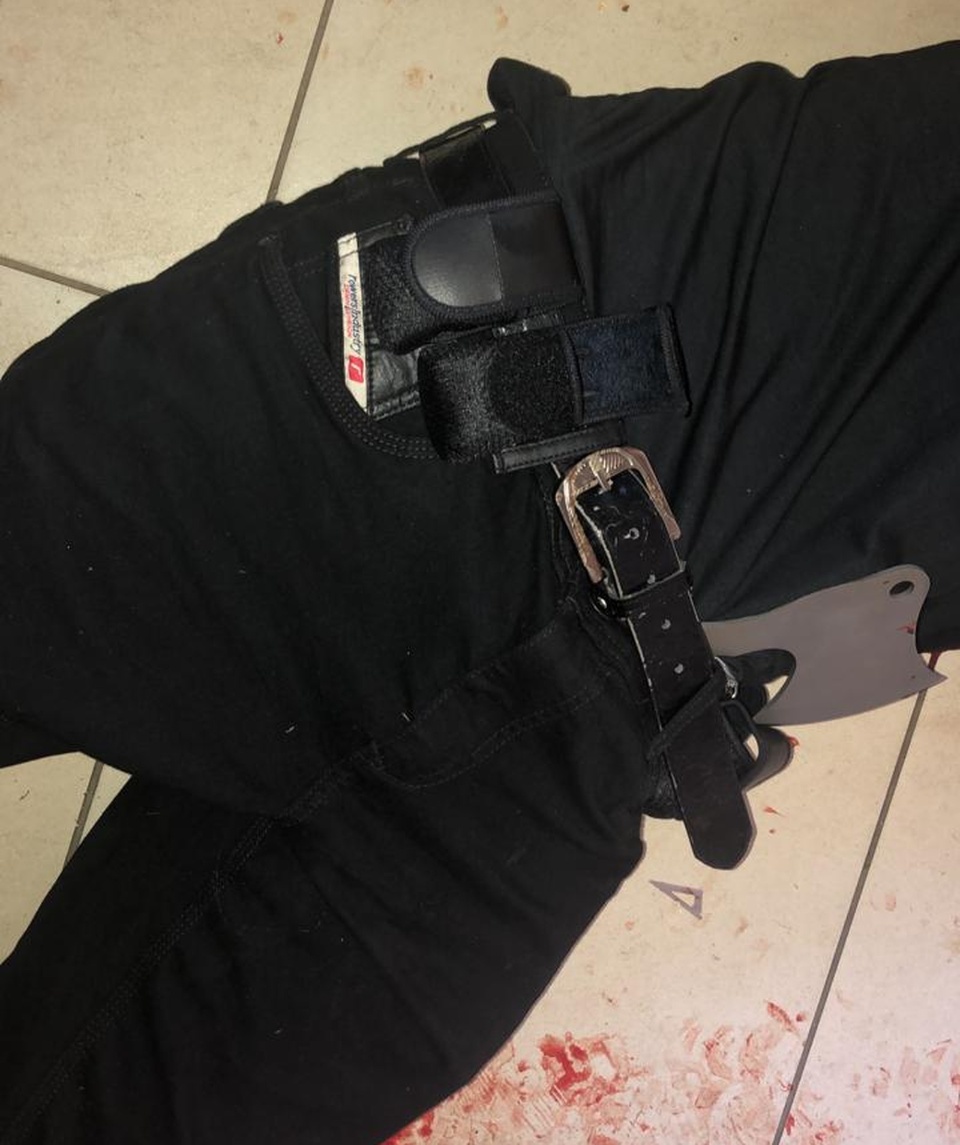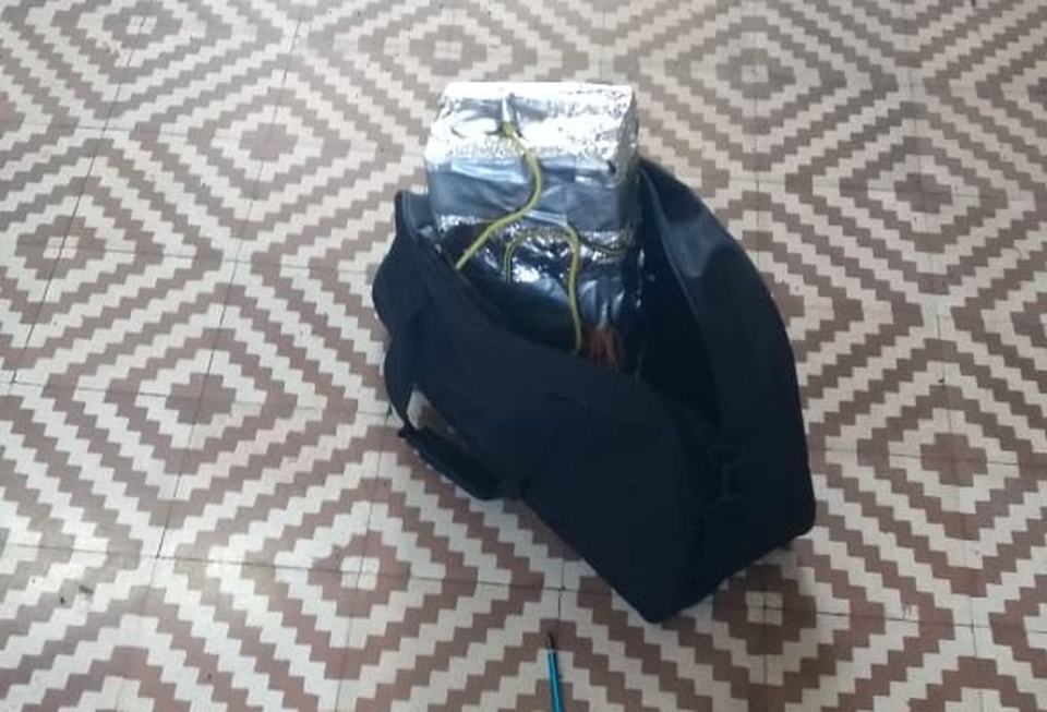 • A PM encontrou no local um revólver 38, uma besta (um artefato com arco e flecha), objetos que parecem ser coquetéis molotov e uma mala com fios