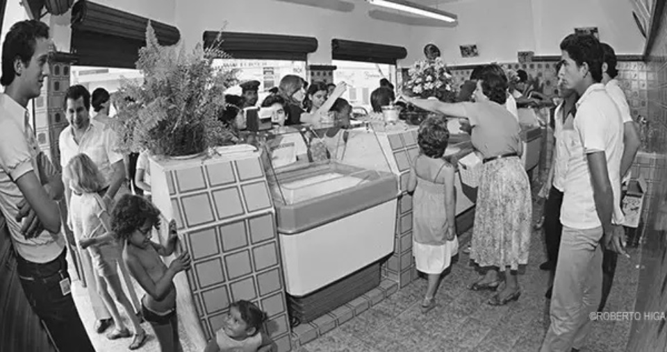 Nas imagens da inauguração da sorveteria na Rua 13 de Maio, segundo Higa, em 1983, o local aparece lotado.