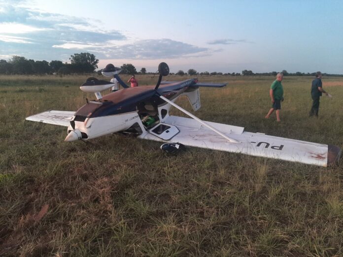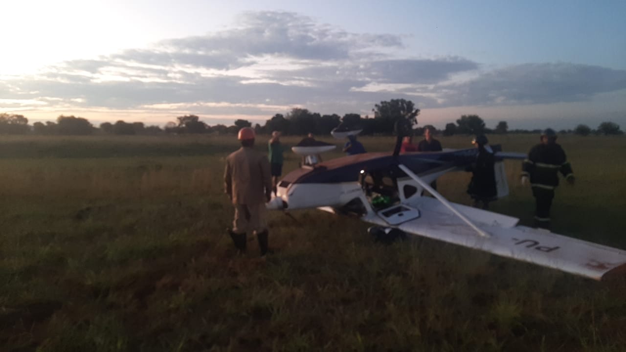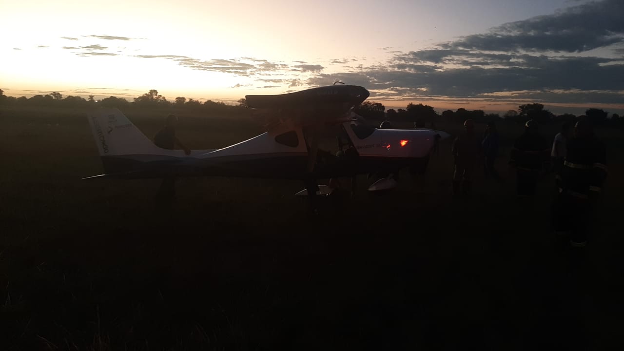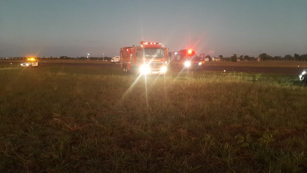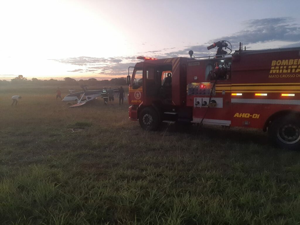 O Corpo de Bombeiros, através do 5°GBM, foi acionado no local, onde constatou que a aeronave, depois de pousar começou a taxiar, e durante o procedimento, veio a tombar.