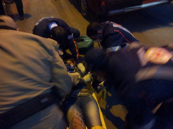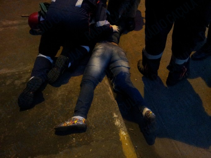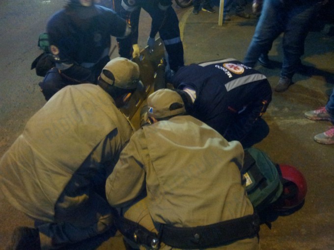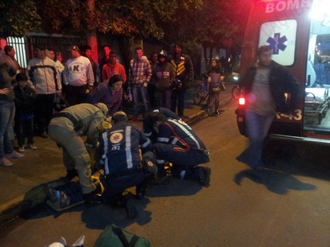 O impacto foi tão forte que a vítima foi arremessada há cerca de 5 metros metros do local, parando próximo a uma calçada, os militares do Corpo de Bombeiros e uma equipe do SAMU (Serviço de Atendimento Móvel de Urgência) estão prestando os primeiros atendimentos à vítima.