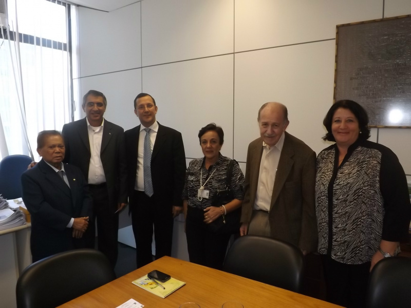 O deputado federal Akira Otsubo (PMDB/MS), o prefeito de Campo Grande, Gilmar Olarte, o diretor-presidente da Fundação Social do Trabalho de Campo Grande (Funsat), Cícero Ávila, e a assessora do senador Waldemir Moka (PMDB), Cornélia Manes, solicitaram na manhã desta quarta (04/06/14) no Ministério do Trabalho e Emprego (MTE) a liberação de R$ 4 milhões para implantar o Centro Público de Economia Solidária de Campo Grande.