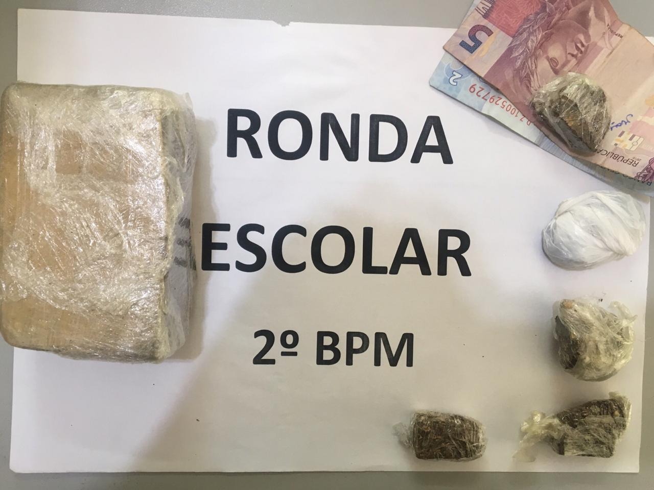 A polícia chegou até o adolescente após denúncias. O aluno tentou esconder o entorpecente no banheiro da escola, mas a droga foi localizada. Dentro de uma sacola estavam um tablete de maconha e mais cinco porções da droga, prontas para comercialização. Também foi localizado com ele a quantia de R$ 7,00, proveniente da venda de drogas.