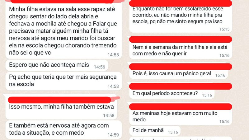 Duas alunas que estavam na classe passaram mal e tiveram que ir embora da escola. Muitos pais ficaram desesperados quando começaram a receber mensagens dos filhos relatando que havia um aluno armado na unidade. Uma das mães, que não quis se identificar, que sua filha estava chorando e tremendo muito.