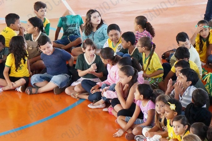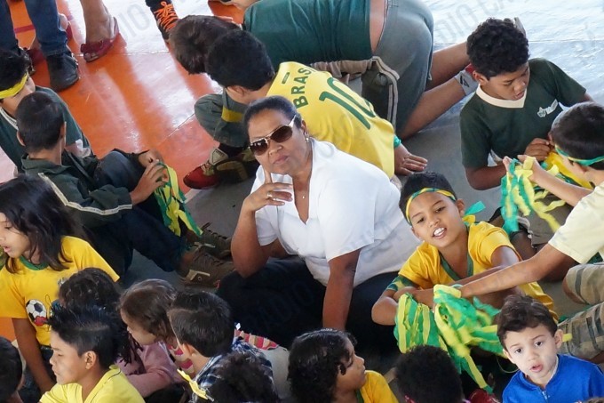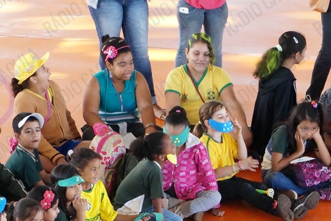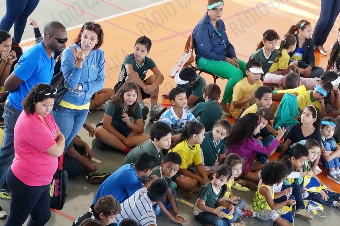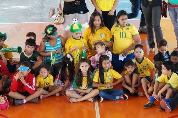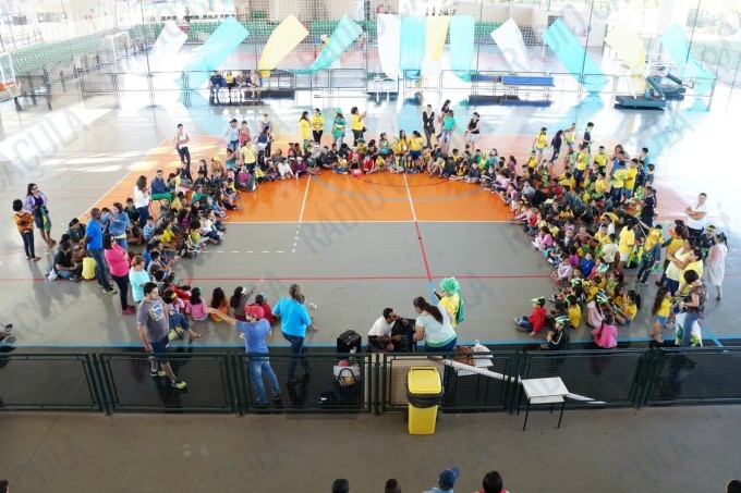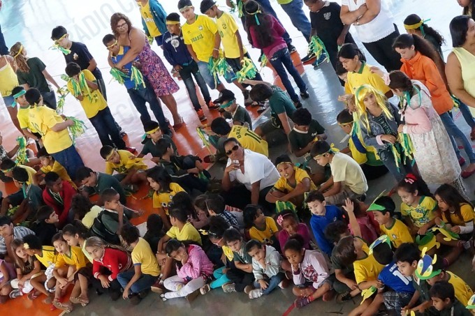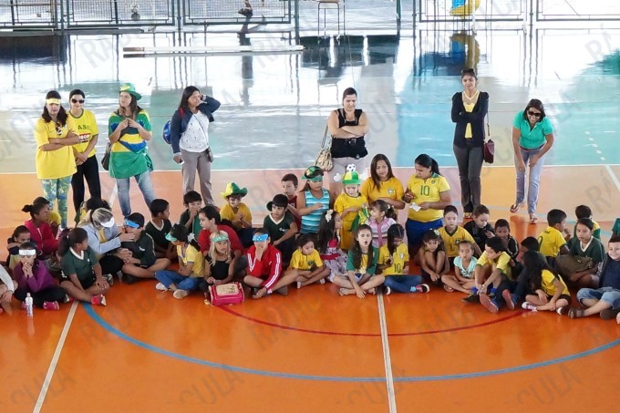 No Ginásio, os alunos estão todos vestidos com as cores verde e amarelo e haverá muitas atividades e brincadeiras em alusão ao projeto.
